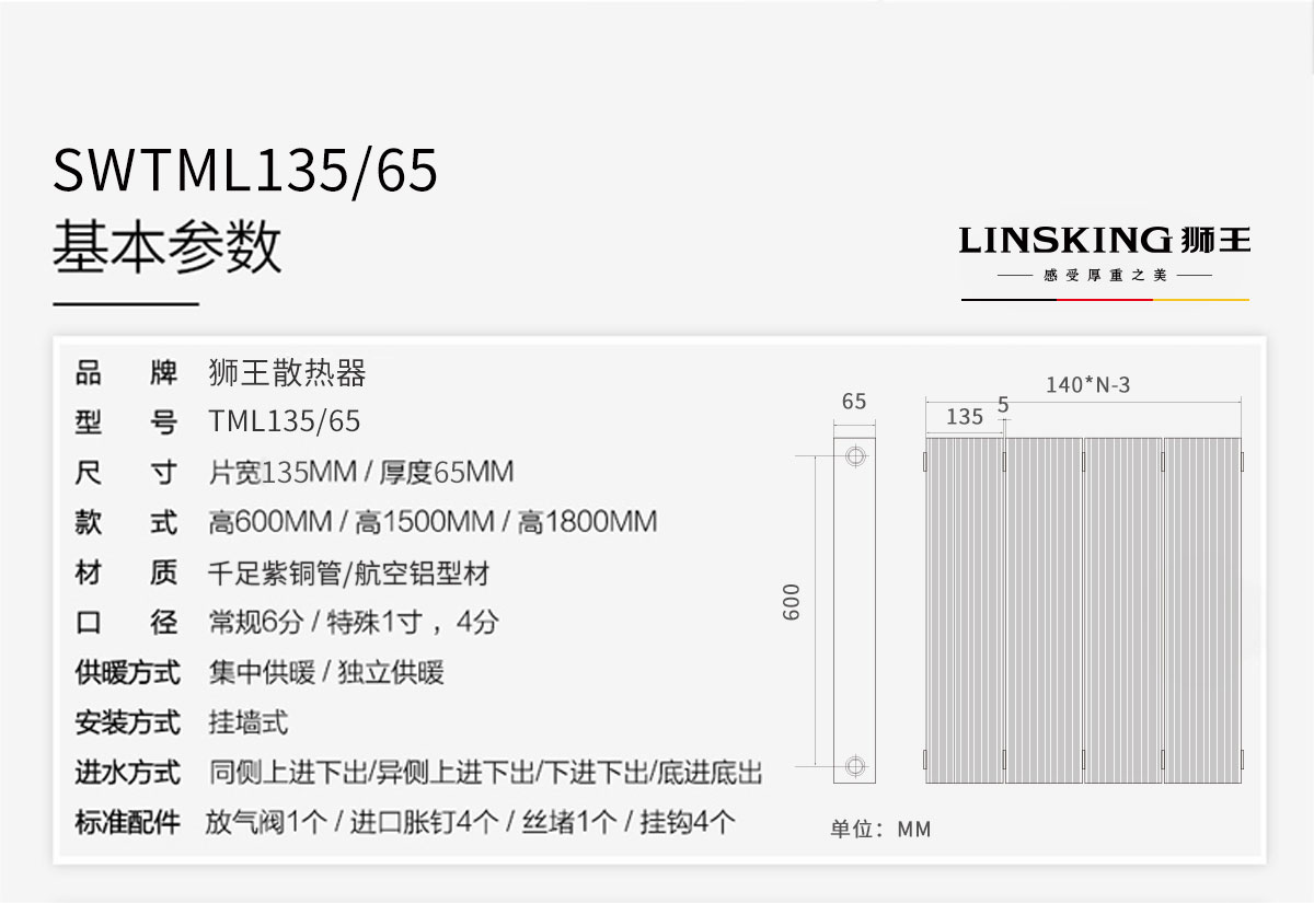 銅鋁復合暖氣片/散熱器_135x65